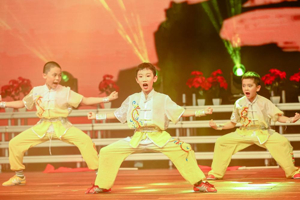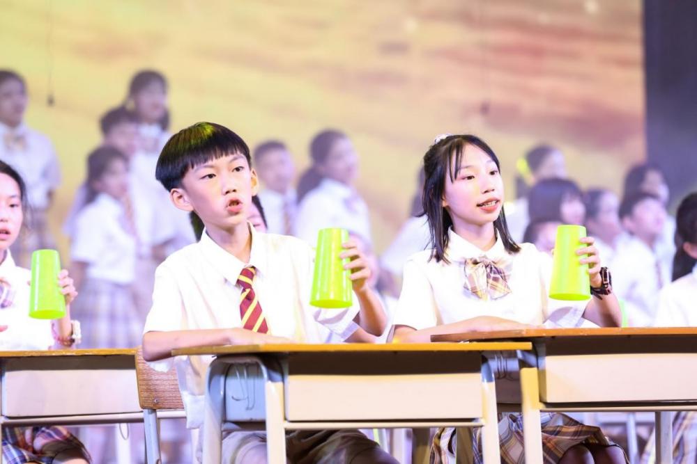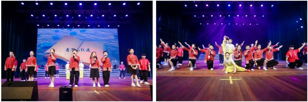 一、二年级魔术班的同学们表演小品《魔法校园》,让大家见证各种不可思议的奇迹;五4鲲鹏中队带来《如江向海》,五年来,他们汇聚附小,迎风踏浪、勇往直前;六年级同学带来的《稻香》,回望小学生涯,蓄积着奋勇向前的力量与勇气。