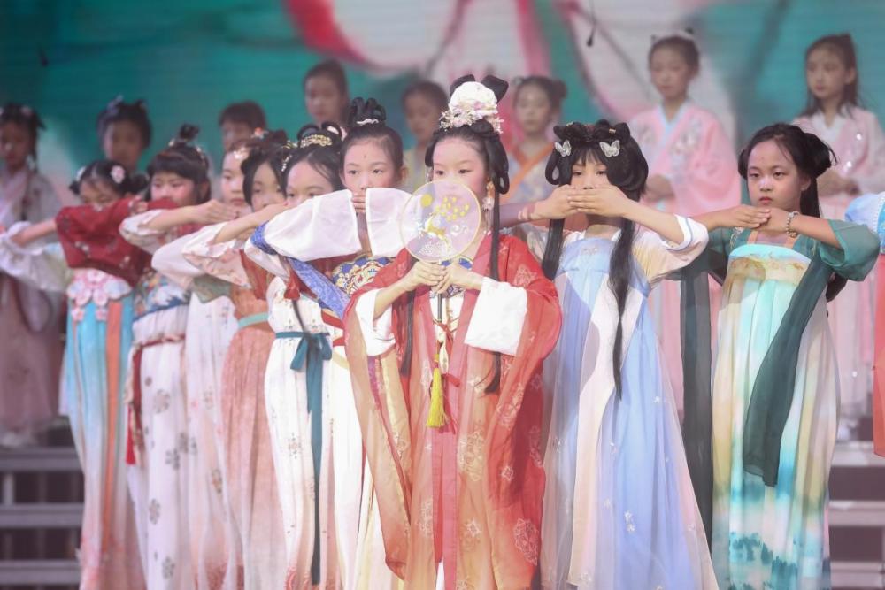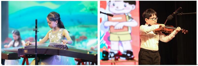 艺术课程以音乐、美术为主线,融入舞蹈、戏剧等内容,对学生进行审美教育、情操教育、心灵教育,逐步提高感受美、欣赏美、表现美、创造美的能力。委婉悠扬,连绵悦耳的古筝演奏《情戏春来》,由小提琴、中提琴、大提琴演绎的《爱的礼赞》,尽展音乐的魅力;诗书礼乐,羽衣云裳,《千年回望,罗衣飘飘》向大家展示不同朝代服装变化之美;傣族舞蹈《幻》,用灵活的肢体展示花腰傣舞蹈的古朴美、线条美与力量美。轻盈、活泼、浪漫的芭蕾舞,激情活力、自由率真的街舞,随着热情的音乐响起,伴着动感的节奏,两种舞蹈传递着内在的精神力量。