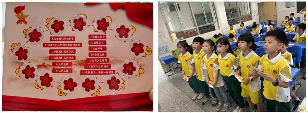 学校大队部围绕“六知、六会、一做”设计了入队闯关卡,拉开了“入队争章”的序幕,极大地激发了同学们对少先队的向往和尽早加入少先队的热情。预备队员们纷纷利用课前、课间、课后时间积极学唱队歌、敬队礼、系红领巾,坚持做好事……期待着早日成为一名合格的少先队员。