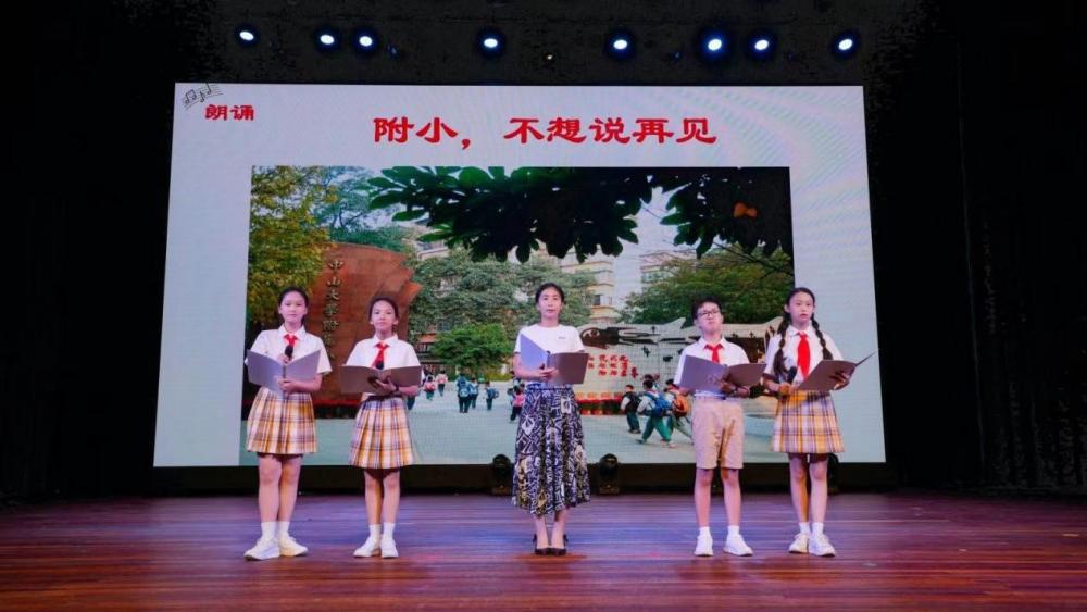 接下来上演的是一段感人至深的朗诵——《附小,不想说再见》。在这个特别的时刻,附小学子和家长代表用诗意的语言表达了对校园生活的深深眷恋与感激之情。