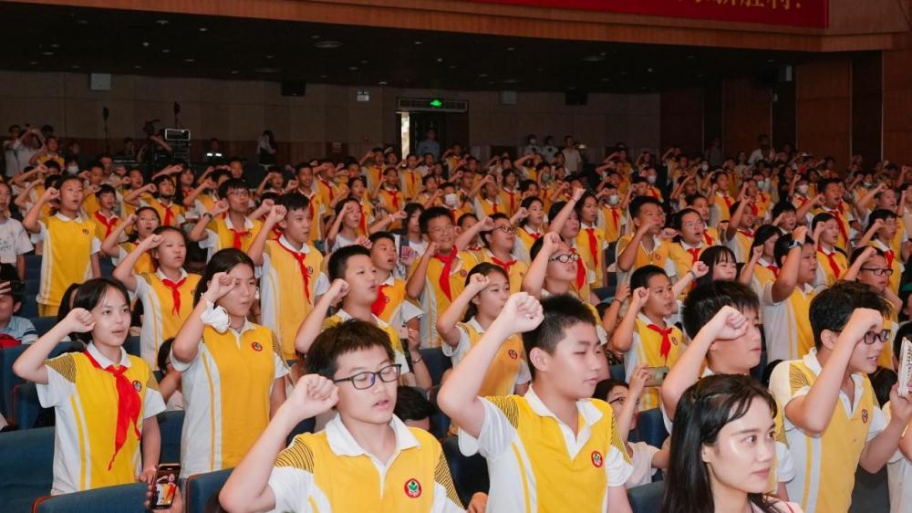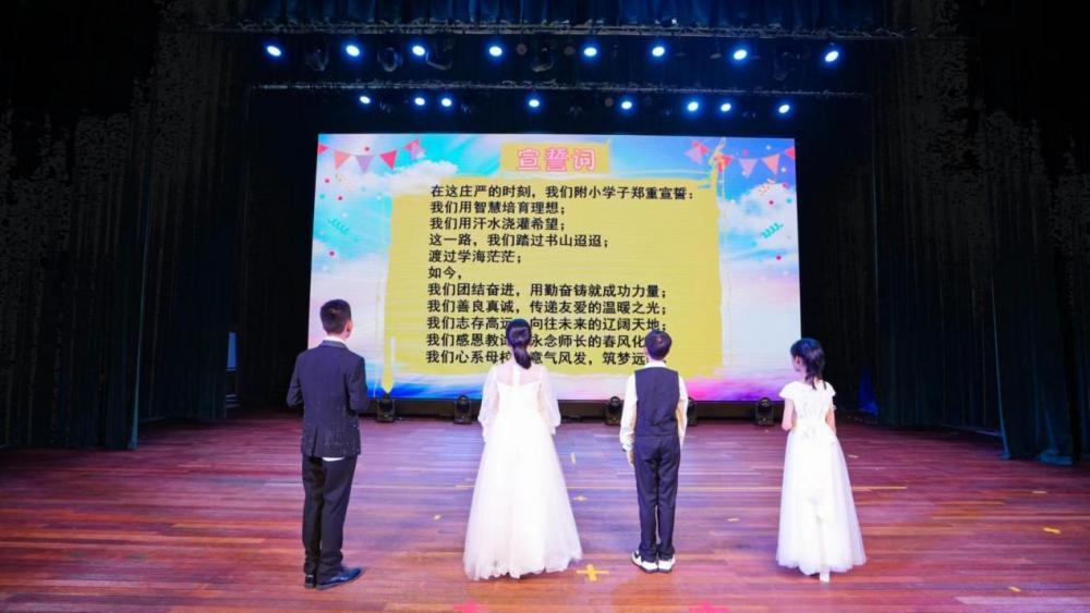 在庄严肃穆的氛围中,附小毕业学子们高举右拳,郑重宣誓: