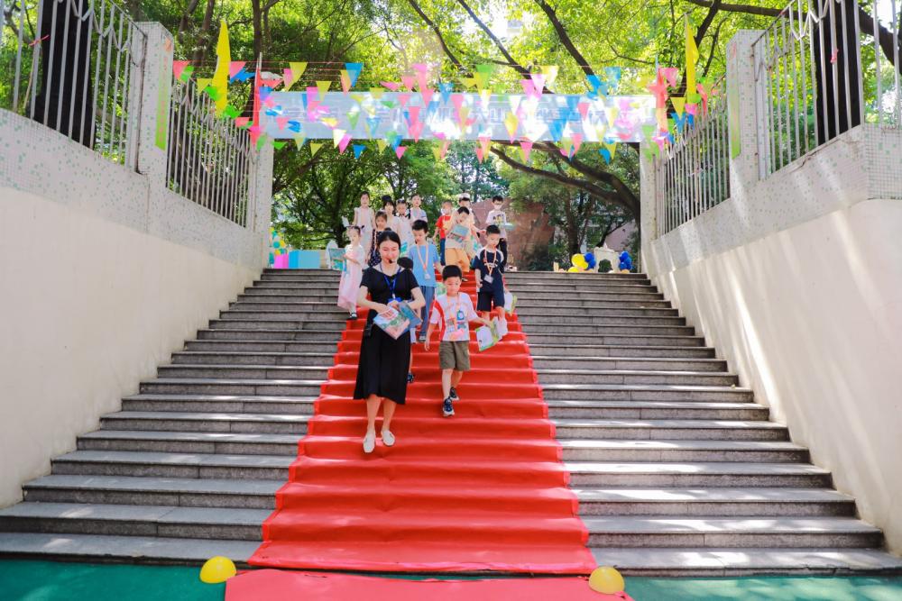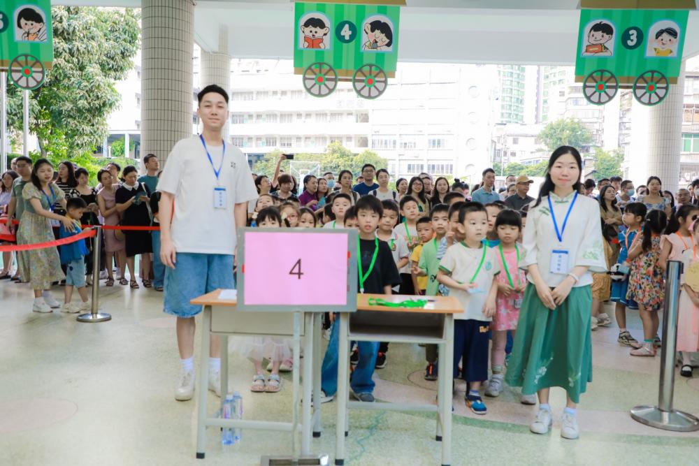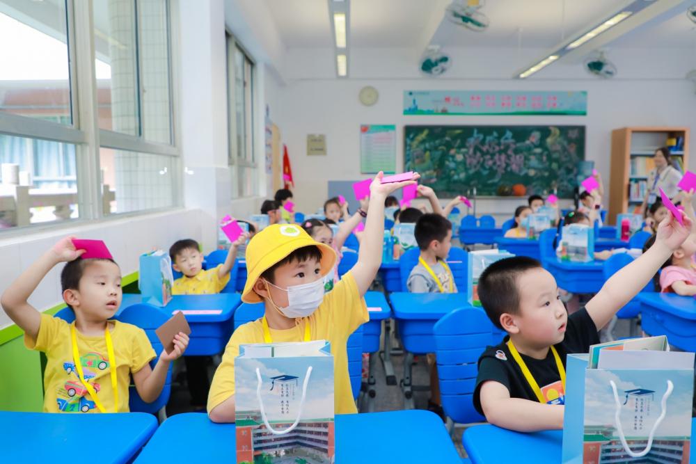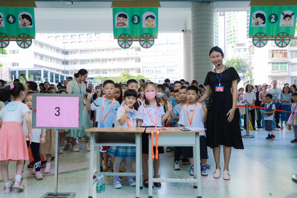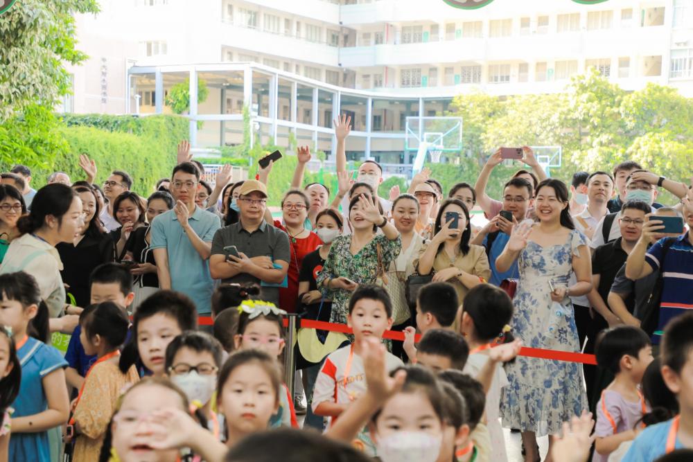 随着“列车广播”响起:“请小朋友们尽快从爸爸妈妈手中接过自己的书包,整理好自己的衣领衣角。请各位家长有序离开专列月台,前往家长等候专区。请小朋友们,按照列车长老师的指挥排好队伍。小朋友们,列车将在5分钟后准点出发,预祝大家旅途愉快!”孩子们朝身后的爸爸妈妈们挥手告别,在爸爸妈妈的目送下踏上了小学生活的列车。