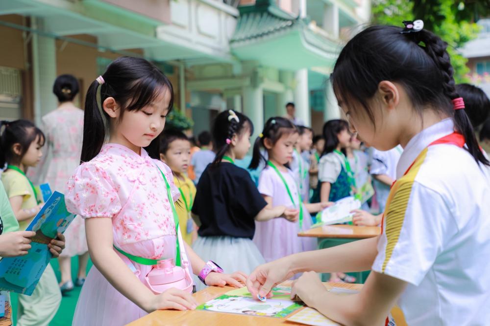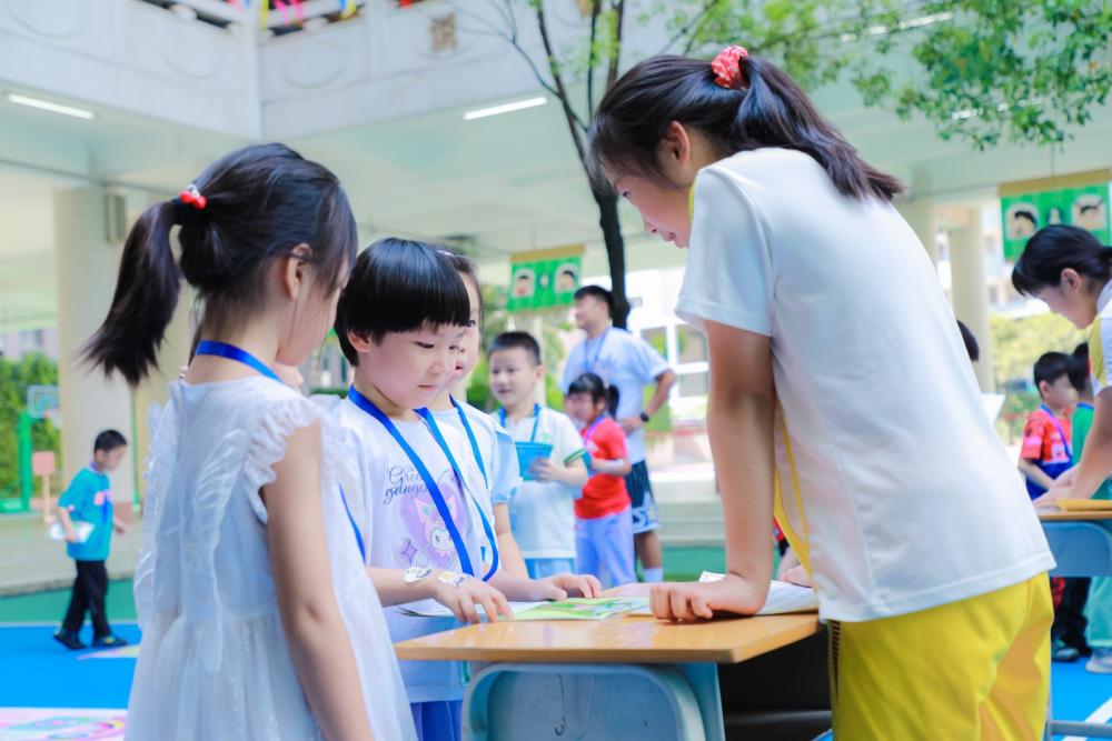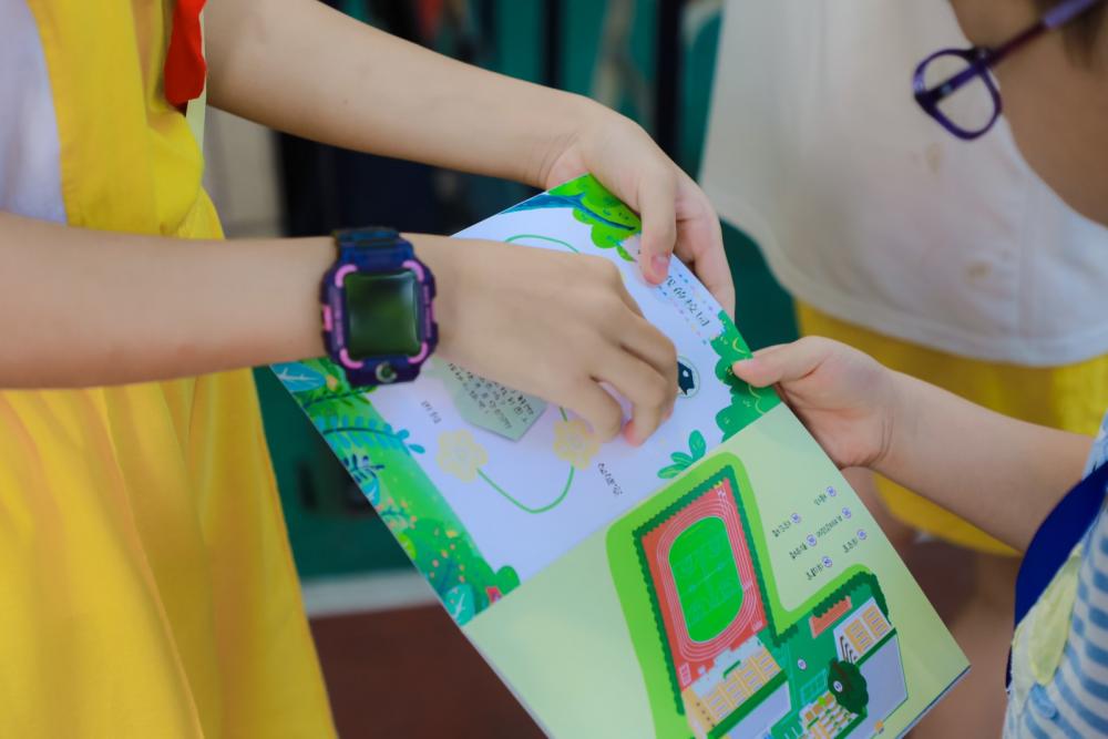 随后,孩子们集队下楼,纷纷对照着附小的地图开始了神奇的“探秘校园”之旅,在大榕树树荫下通过有趣的方式认识了附小美丽的校园。