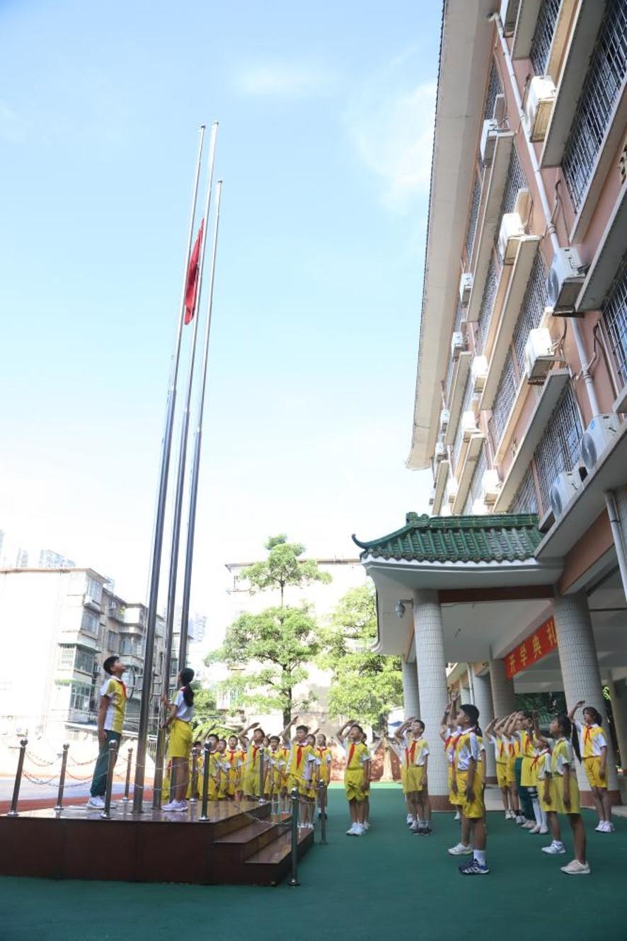 国旗冉冉升起,伴随着庄严的国歌奏响,全体师生肃立敬礼。中大附小师生饱含着热情与敬重,唱响国歌,表达了对祖国的祝福和美好的祈愿。