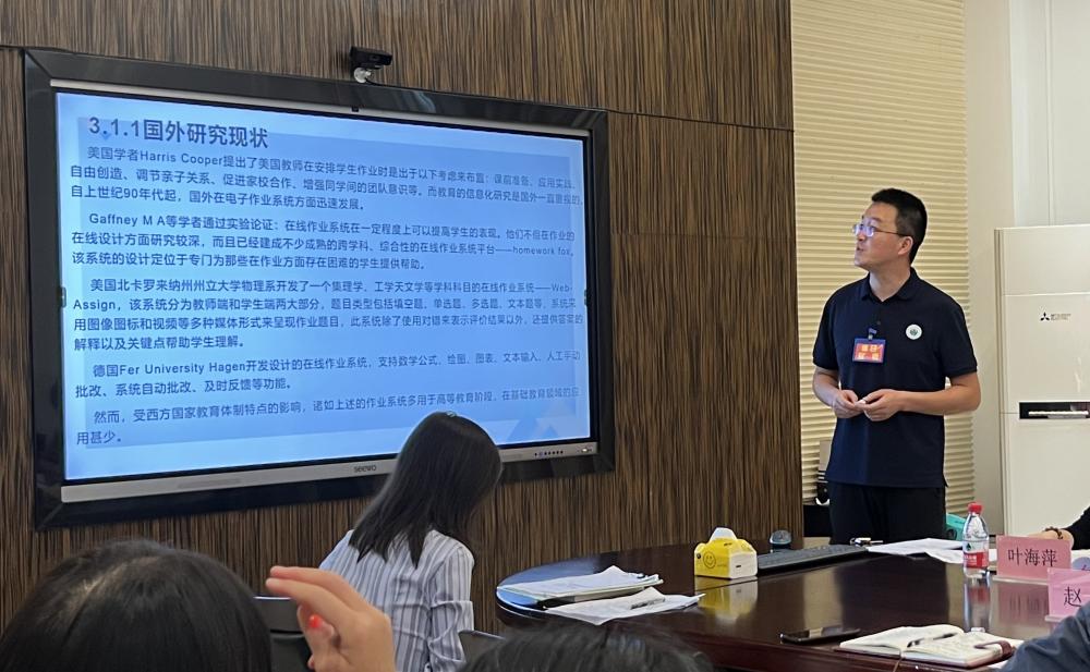 紧接着,课题负责人杨燕飞老师、赵文副主任分别对所主持的课题作开题报告。两位负责人均从选题背景、研究现状、核心概念界定、研究目标及内容、研究方法与步骤、预期成果及形式等方面作了详尽的介绍。随后,课题组成员邹佳林、欧阳覃璇分别对课题内容作了补充发言。