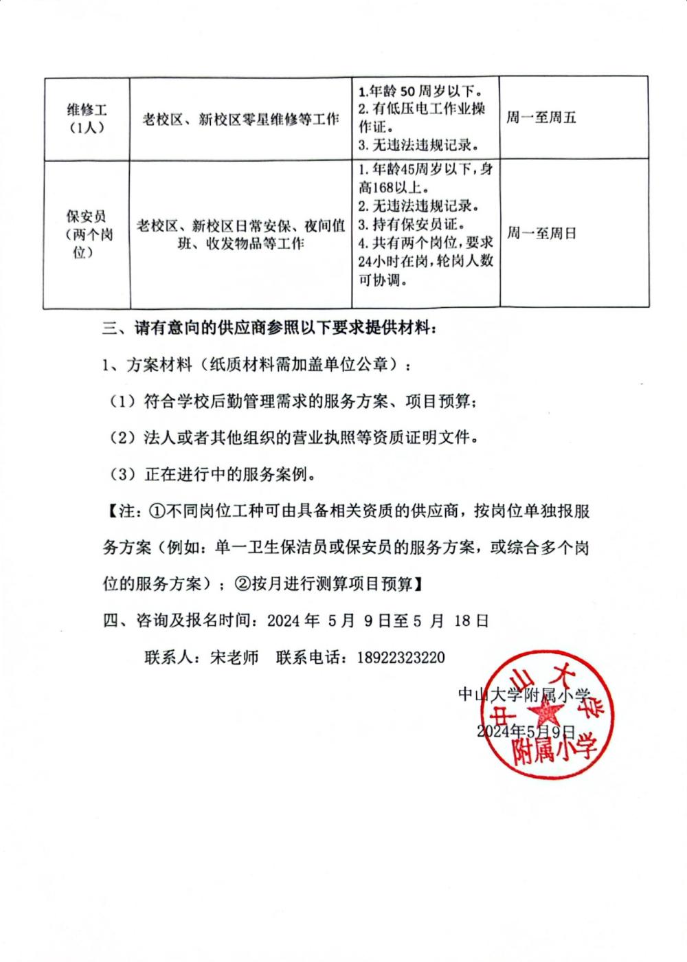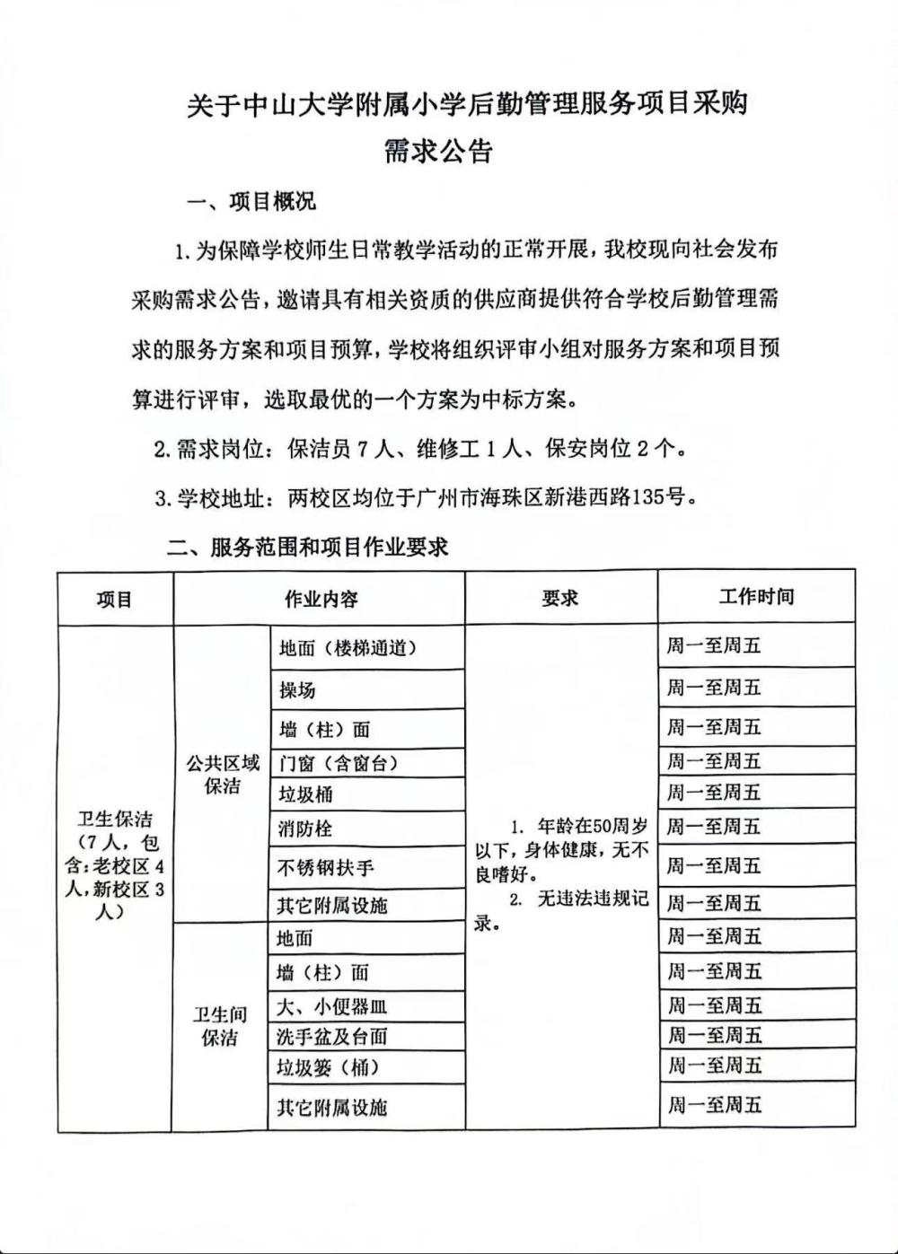 关于中山大学附属小学后勤管理服务项目采购需求公告