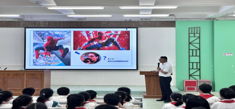 讲座于下午三点二十分在四年级全体师生热烈的掌声中准时拉开帷幕,卢教授以亲切而生动的语言,用孩子们熟悉又喜爱的《蜘蛛侠》电影片段引出了基因的概念,接着又通过一系列生动形象的例子,将复杂的基因编辑技术的相关知识转化为一个个生动有趣的故事。卢教授将基因描绘成掌握生命秘密的“魔法棒”,它就像一位神通广大的魔法师,挥动魔杖就能指挥着我们身体的每一个部分,决定我们的眼睛颜色、身高、大拇指的弯曲程度,甚至我们的性格。