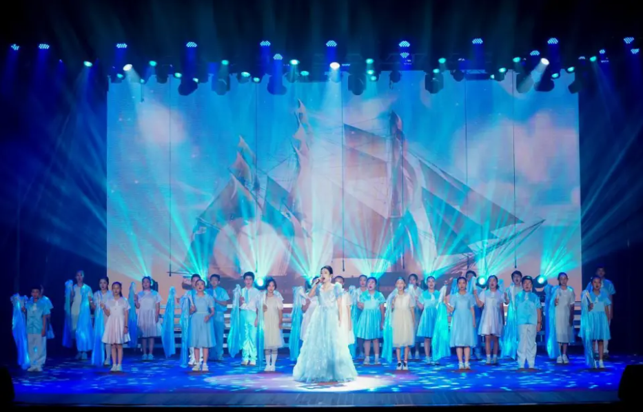 表演唱《启航、远航》,悠扬的旋律成为海风的低语,引导我们一同起航,乘着音乐的翅膀,飞向更辽阔的远方!坚定的步伐能踏平前方的荆棘,小天老师带领我们的勇敢战士们,以激昂的歌声演绎《着魔》,点燃我们心中不灭的战火。我们将腾空而起,绽放生命最辉煌的瞬间,大合唱《把未来点亮》将现场氛围推向高潮。