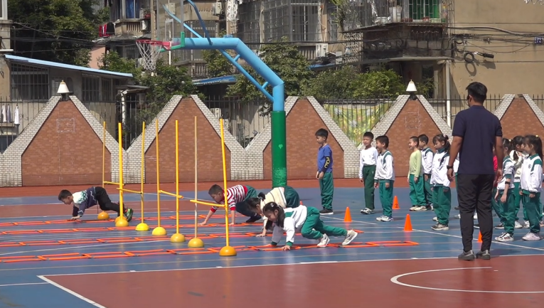 曾晨老师的课针对一年级学生喜欢游戏和扮演的共性特点和个性差异,创设消防战士角色,营造消防演练的主题情境,启发引导学生了解支撑与攀爬的方法。通过“学、练、赛、评”一体化教学,使学生获得丰富的运动体验和认知,提高基本活动能力和支撑与攀爬的水平,以跨学科的新理念,在体育课堂中运用国防教育知识创新教学内容和形式,营造活跃而有序的课堂,激励师生融合创新,为教学升级赋能。
