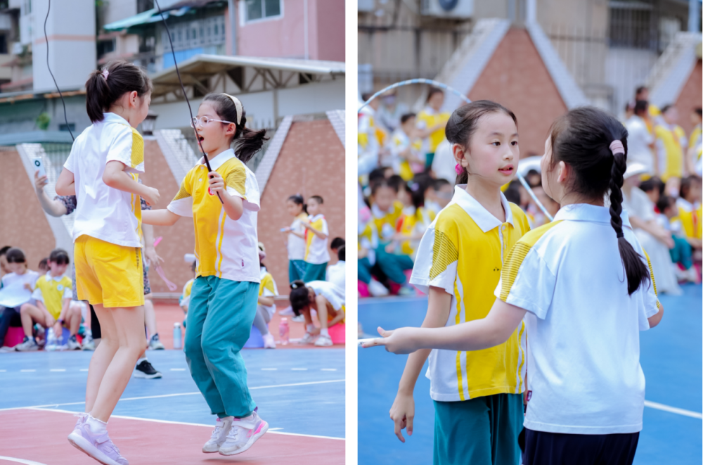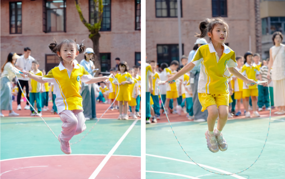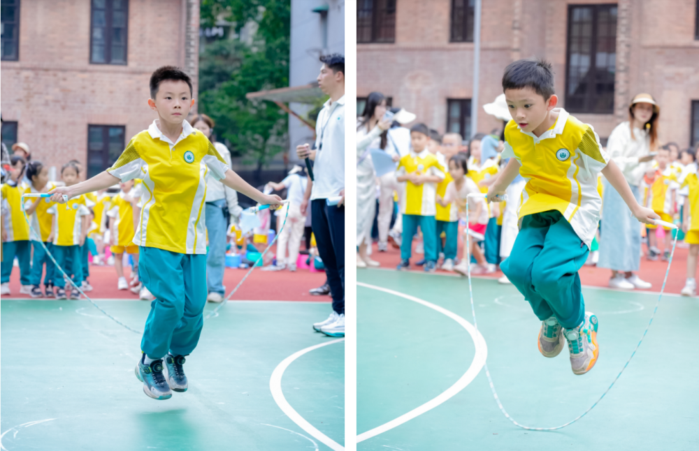 用拼搏与汗水为自己定格下缤纷童年里的闪光瞬间,以努力与奋斗为一次勇敢的挑战画下深刻的句点。场上,有的选手面对失误不轻言放弃,及时调整状态,再次挑战自我;有的队伍在落后时不气馁,相互鼓励,最终实现了逆转。场下,那些热情欢呼、摇旗呐喊、安慰鼓舞的孩子同样是一道亮丽的风景。每一道目光都见证喜悦与感动交织共融。此次跳绳比赛,不仅锻炼了孩子们的体能和意志力,也提升了他们的协调性和敏捷性,更体现了团结协作、勇于挑战的精神风貌。