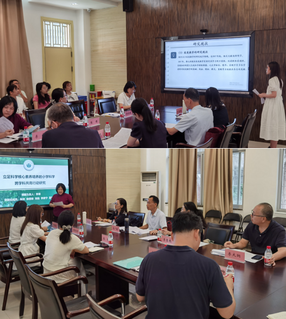 学思并进,方能行稳致远。10月23日下午,海珠区教育科学规划2024年度立项课题《基于深度教学理念的小学英语复习教学的实践研究》和《立足科学核心素养培养的小学科学跨学科共育行动研究》开题论证会在我校小会议室举行。