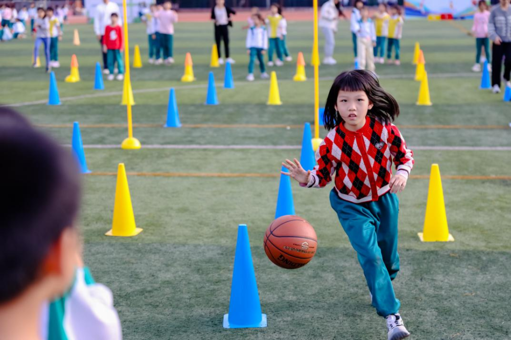 “篮球接力”精彩连连,队员们全神贯注,运球飞速的奔向自己的队友,将速度、技巧与团队协作展现的淋漓尽致。