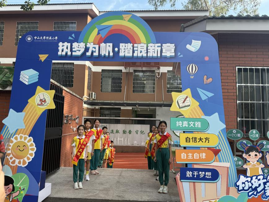 九月的风,轻软,九月的阳光,明澈。晴空如洗,悠悠白云在碧瓦红墙上作画。孩子们笑容绽放,校园格外生动活泼。在这象征着收获与希望的美好时节,中大附小2025学年以“执梦为帆,踏浪新章”为主题的开学典礼拉开帷幕。我校全体师生齐聚校园,目光灼灼如炬,胸中激荡着奔赴山海的豪情——这不仅是一场仪式的开启,更是一段成长新征程的集结号!