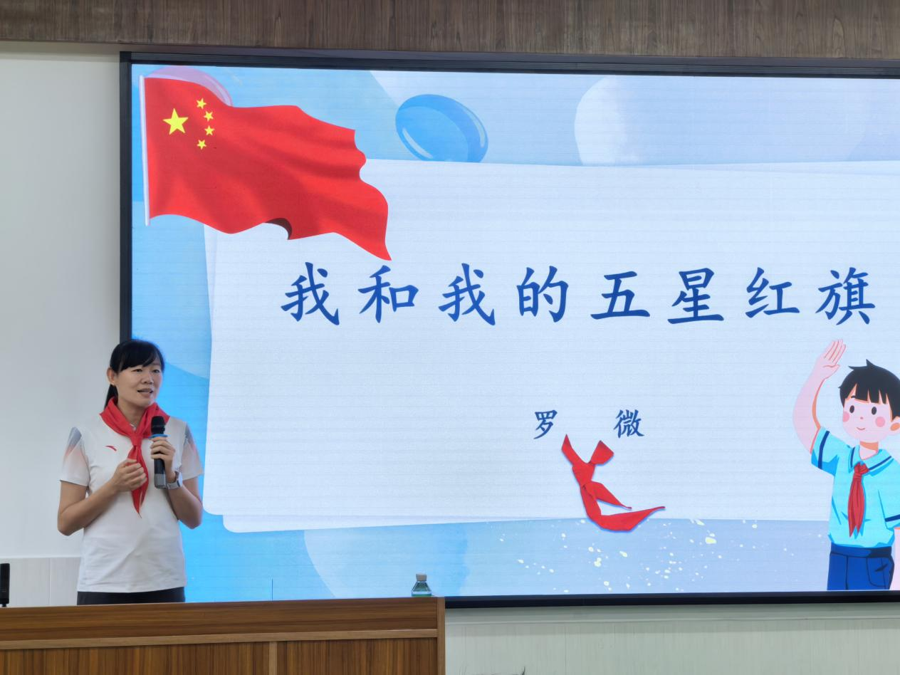 活动伊始,少先队员代表为罗微老师系上红领巾,表达全体师生的崇高敬意。罗微老师动情地回忆起自己小时候渴望成为第一批戴上红领巾的少先队员,她说,戴上红领巾对自己是一种激励,更是她选择运动员道路的初心——希望让国旗更加鲜艳,在世界舞台上高高飘扬。