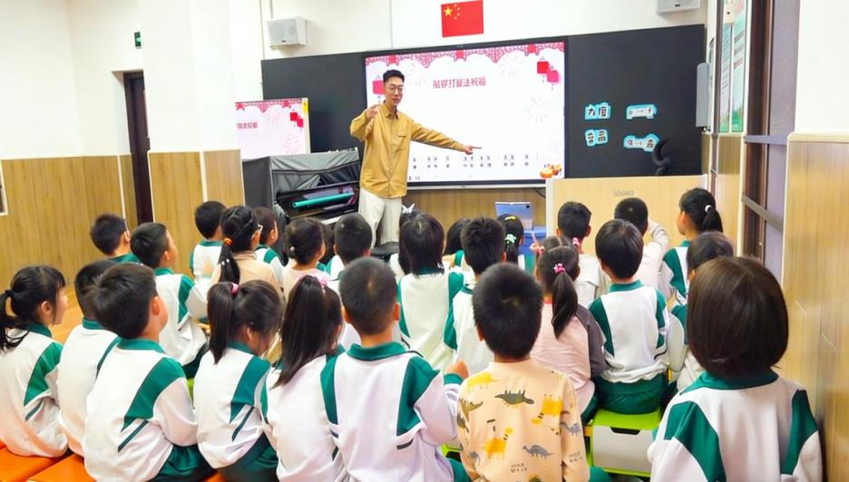 王天诺老师的音乐课堂《彩莲子船》融合民俗文化与音乐学习,学四川方言、识劳动号子,结合律动游戏、库乐队实操,让学生在趣味体验中感受民歌魅力,感知春节音乐的喜庆风格,落实以美育人。