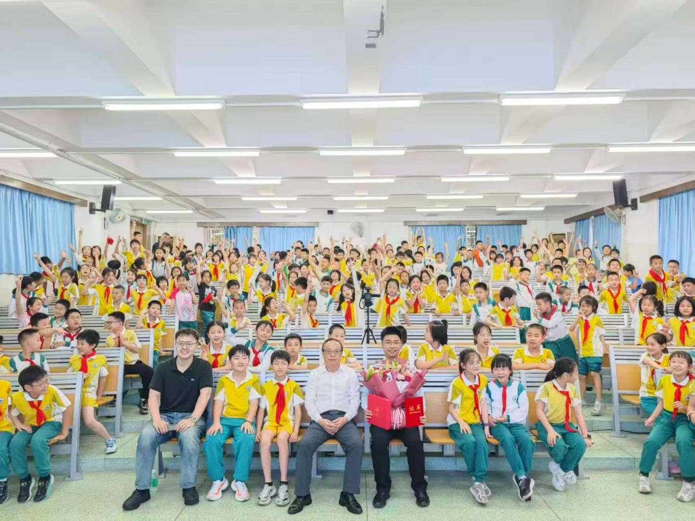 为表达最诚挚的谢意与对科学家精神的敬意,刘校长代表学校,向林园教授郑重颁发了荣誉证书及纪念礼品,感谢林教授百忙之中为孩子们带来精彩的科普分享,感谢对我校科普活动的大力支持。随后,中大附小的学生代表们向林园教授献上了饱含谢意的鲜花。活动最后,全体师生与林园教授合影留念,定格下这场难忘的科学之旅。